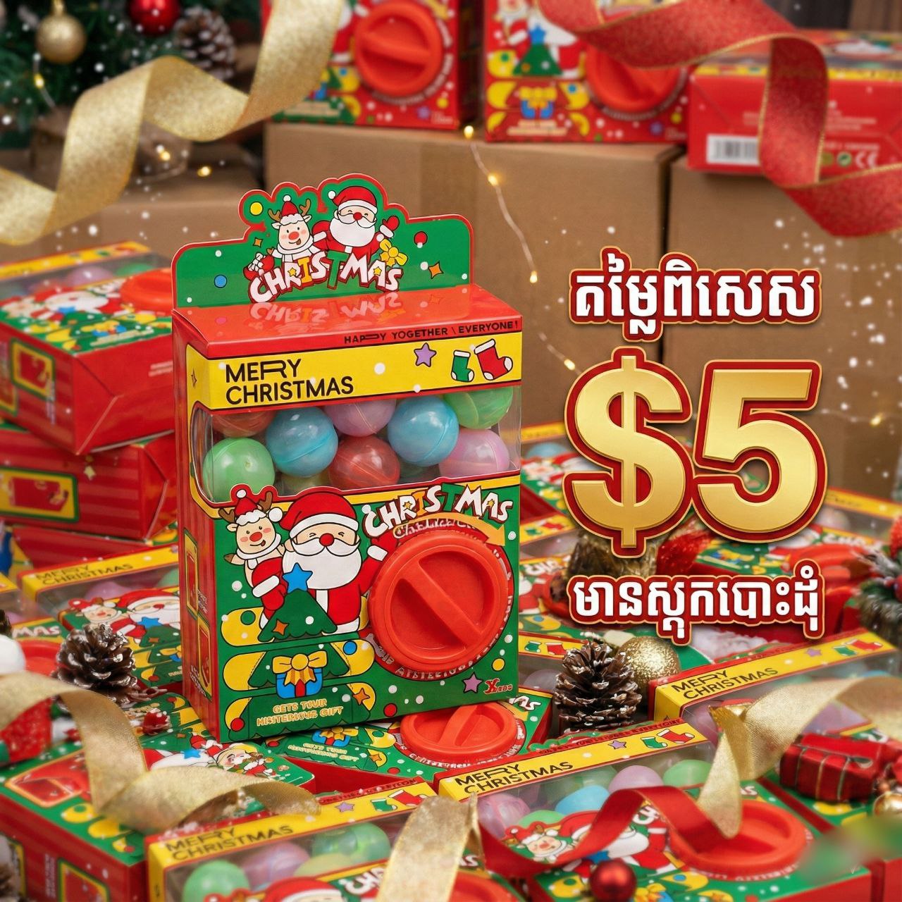 រីករាយជាមួយម៉ាស៊ីនបង្វិលស៊ុតអាថ៌កំបាំងបុណ្យណូអែលរបស់យើង! រាល់ការបង្វិលនឹងបង្ហាញប្រដាប់ក្មេងលេងតូចមួយដែលលាក់នៅក្នុងស៊ុតពណ៌ស្រស់ស្អាត។