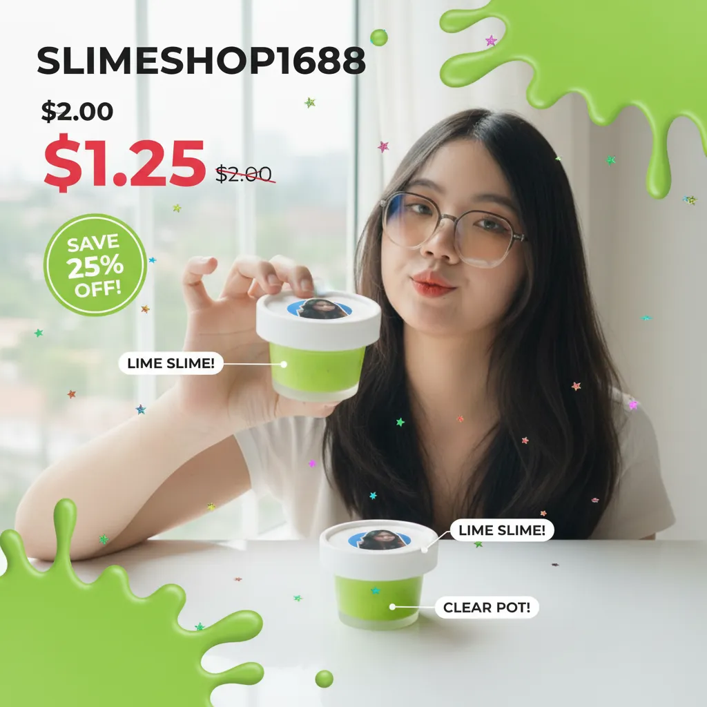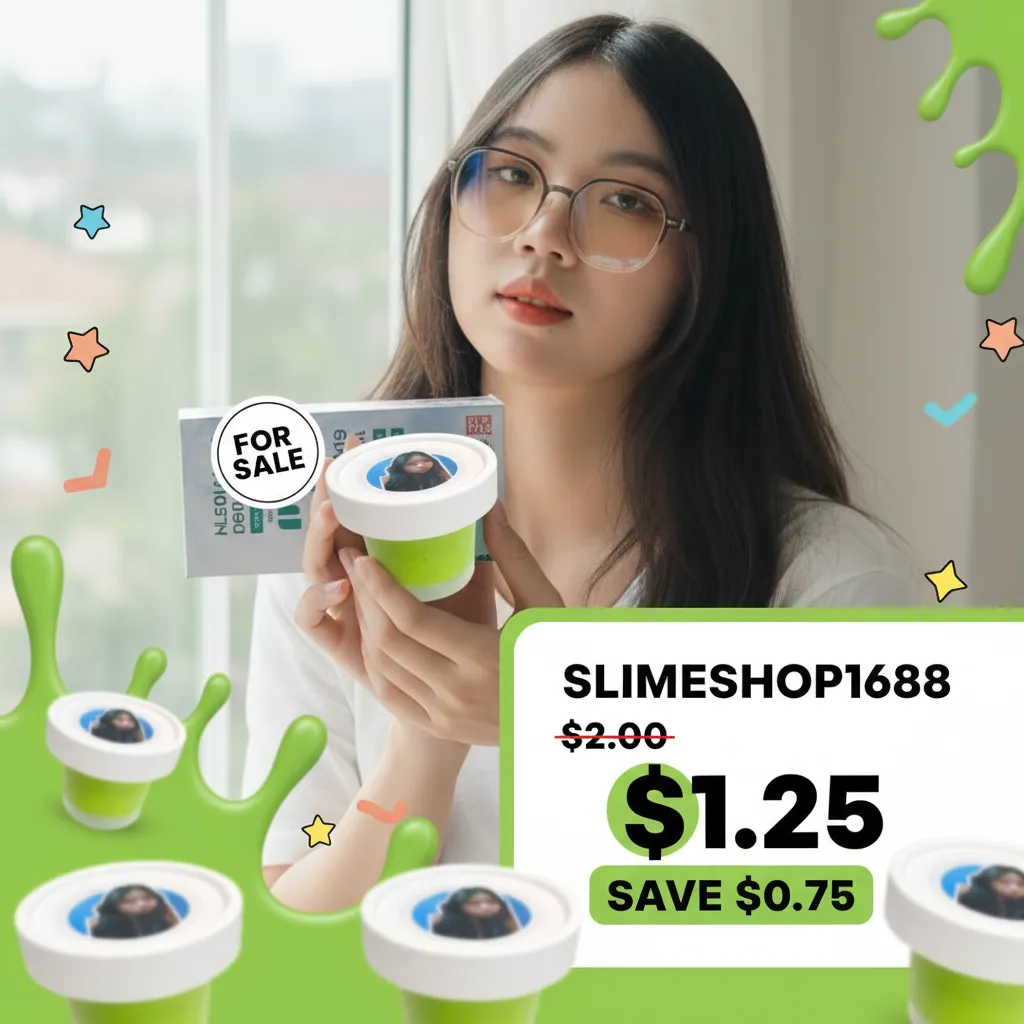 • ជាឈុត DIY Sparkle Slime Kit ដែលអនុញ្ញាតឱ្យអ្នកបន្ថែមរូបថតផ្ទាល់ខ្លួនរបស់អ្នកនៅលើគម្រប។